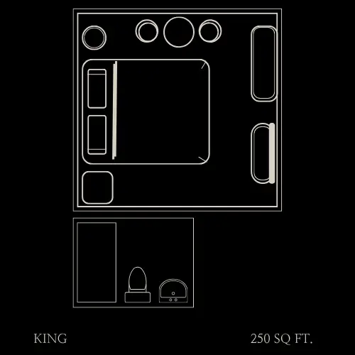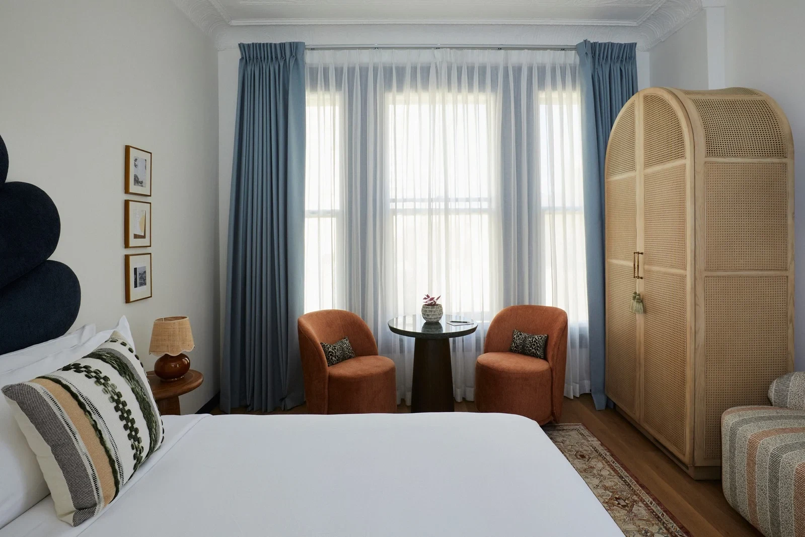 Overlooking the courtyard with upper- level views of the city and Gaslamp Quarter, this room is a tranquil escape with a modern aesthetic and additional space.